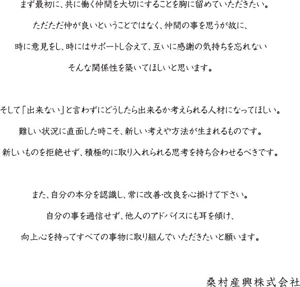 将来的にはリーダーや専門的知識を生かした活躍を期待しています。