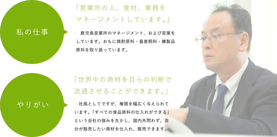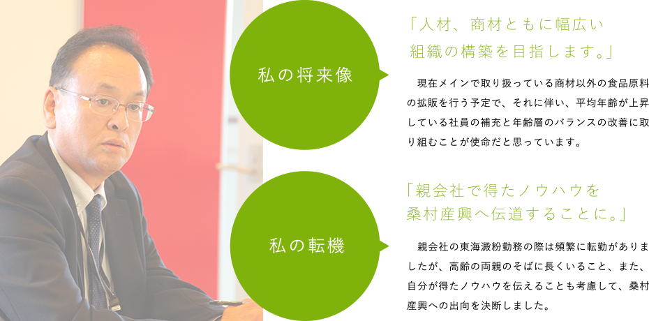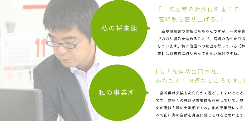 桑村産興を支える九州三県それぞれの事業所で重要な役割を担う社員の方たちが歩んできた「これまで」と歩んでいく「これから」について聞いてみました。桑村産興で積んだ経験によって成長した実感、身につけたスキルによって「未来の桑村産興」を創り上げる意欲や責任がきっとあなたにも伝わるはずです。
